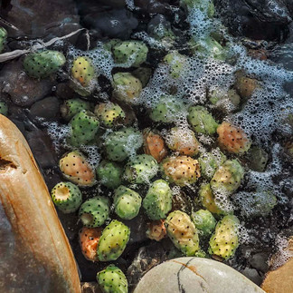 ci inerpichiamo dai ciottoli sulla scogliera per raccogliere i fichidindia